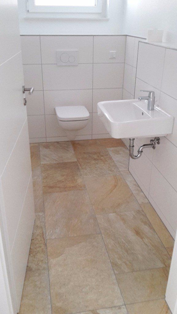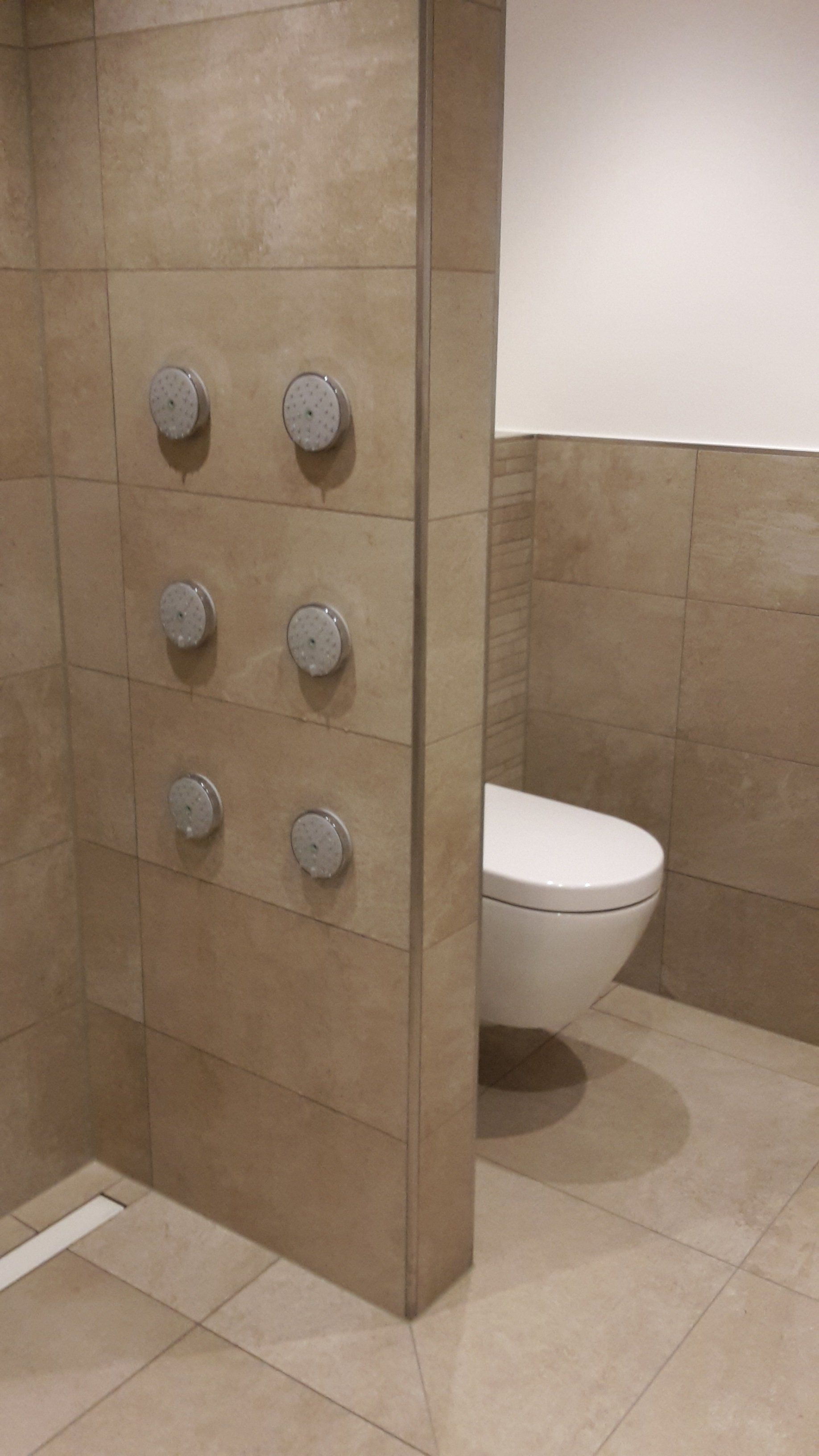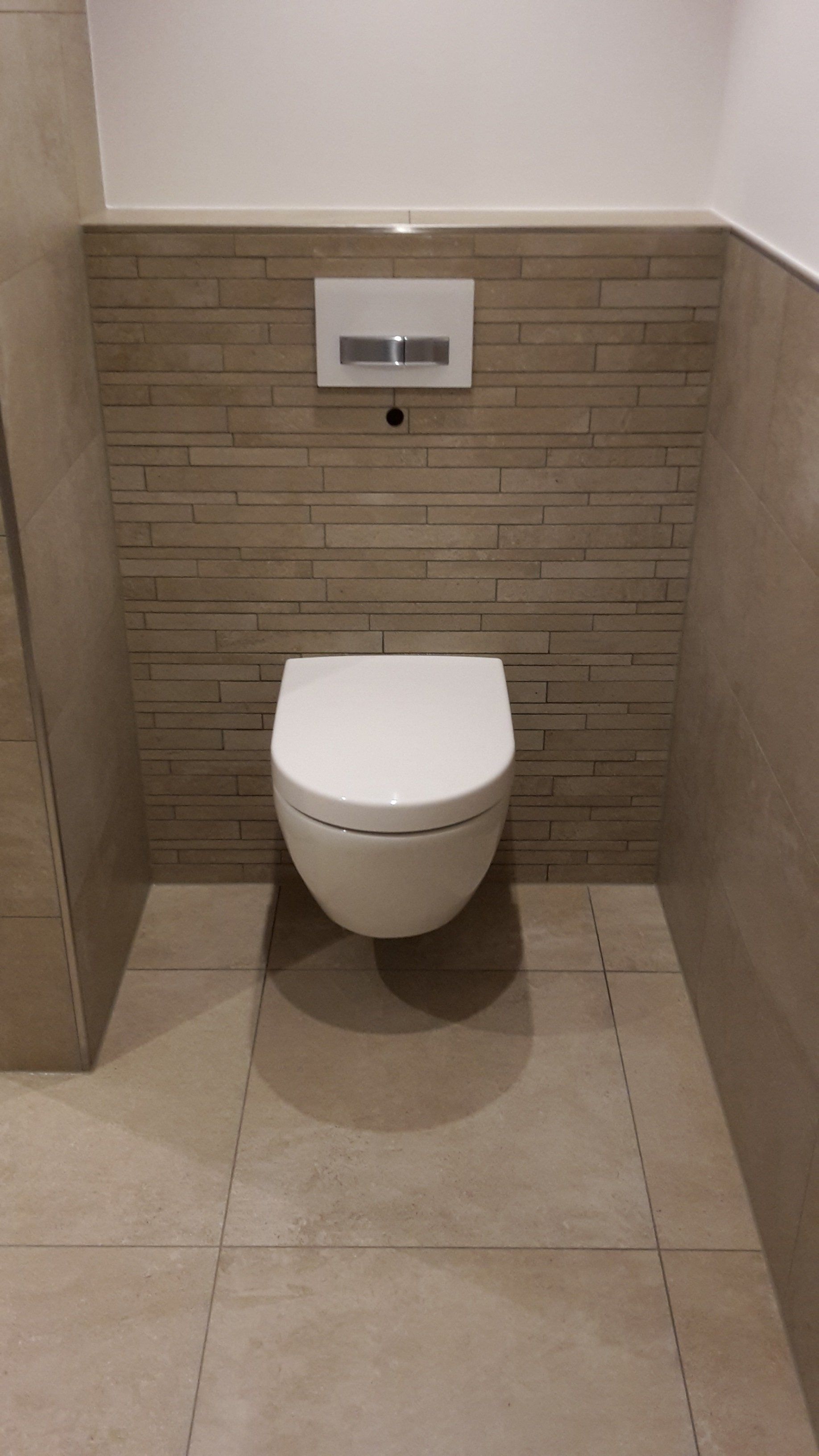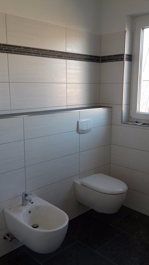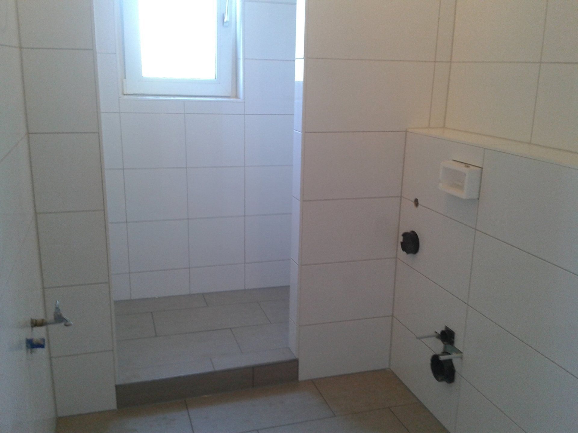 Fliesenarbeiten in Norderney. Es wurde in einem Apartmenthaus das gesamte Erdgeschoss modernisiert und von uns in diesem Zusammenhang die Fliesenarbeiten in den 2 Bädern und dem Flur / Eingangsbereich ausgeführt. Der Flur hatte durch verschiedene Höhen angrenzender Räumlichkeiten in vielen Bereichen unterschiedlich starkes Gefälle was im Zusammenhang mit den großen Bodenfliesen und den schräg verbauten Revisionsschächten die Arbeiten erschwerten.