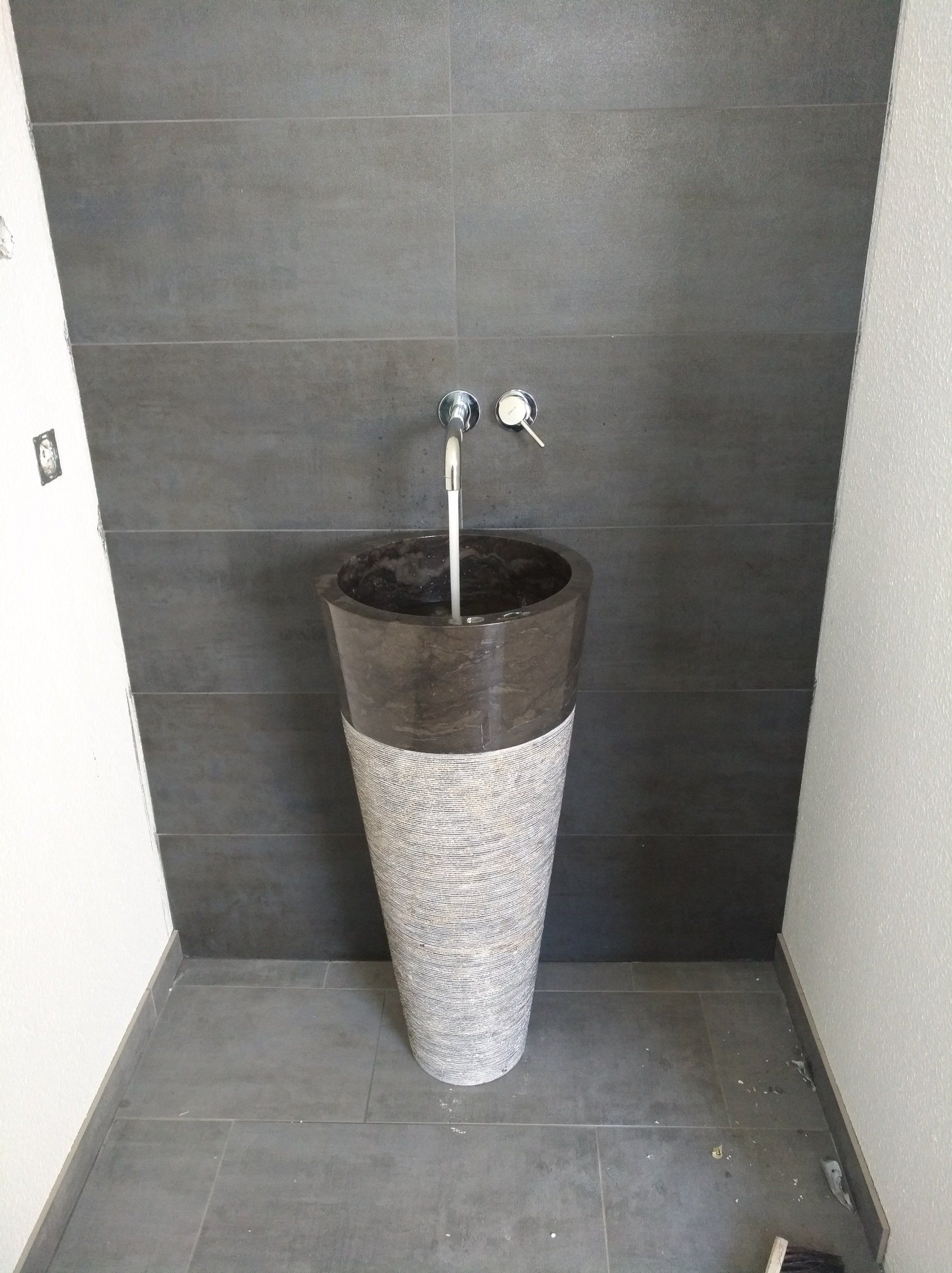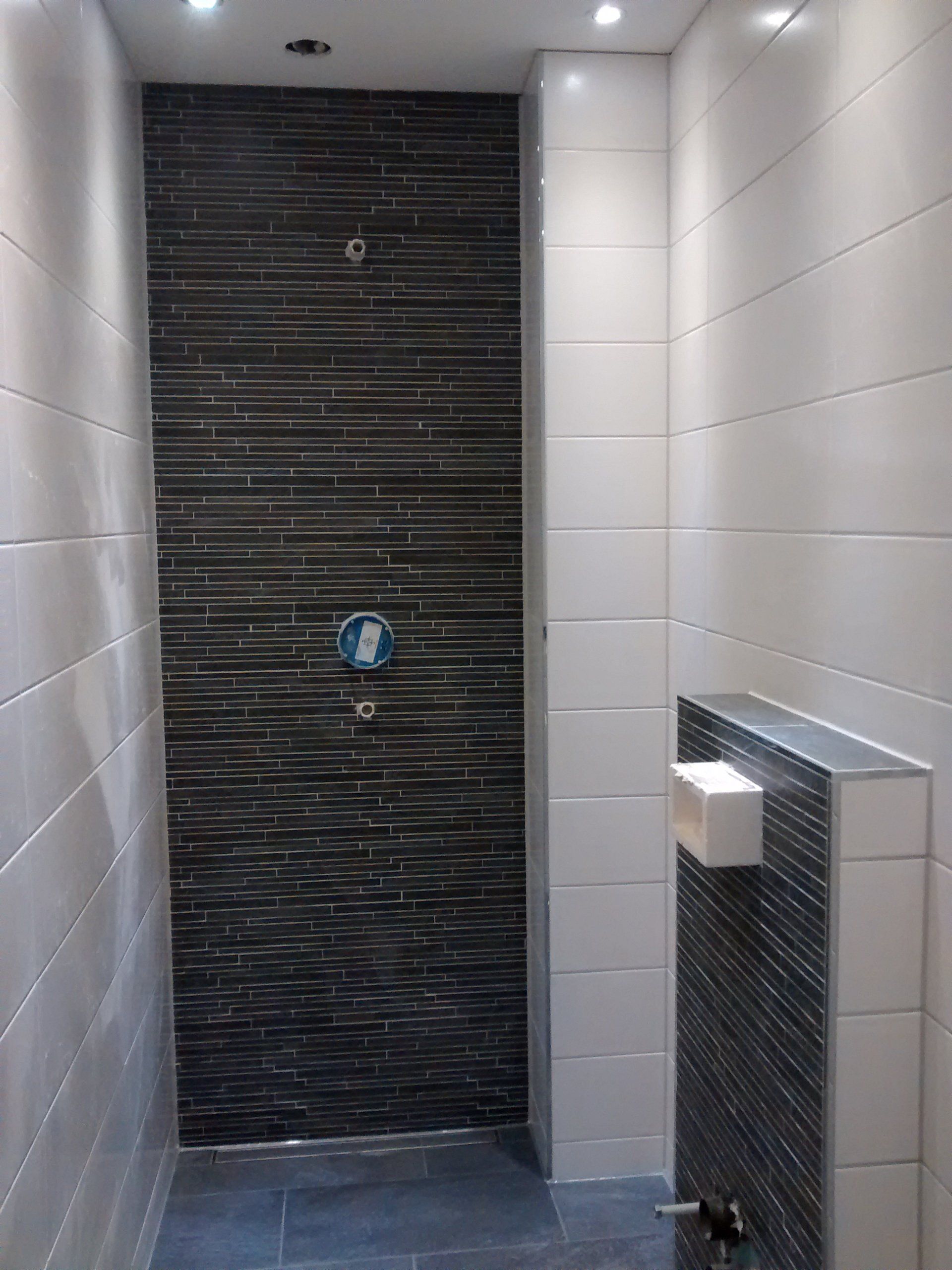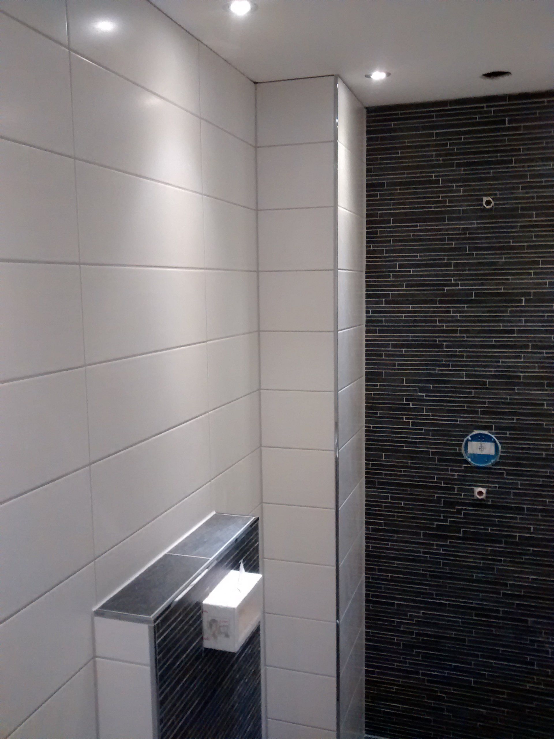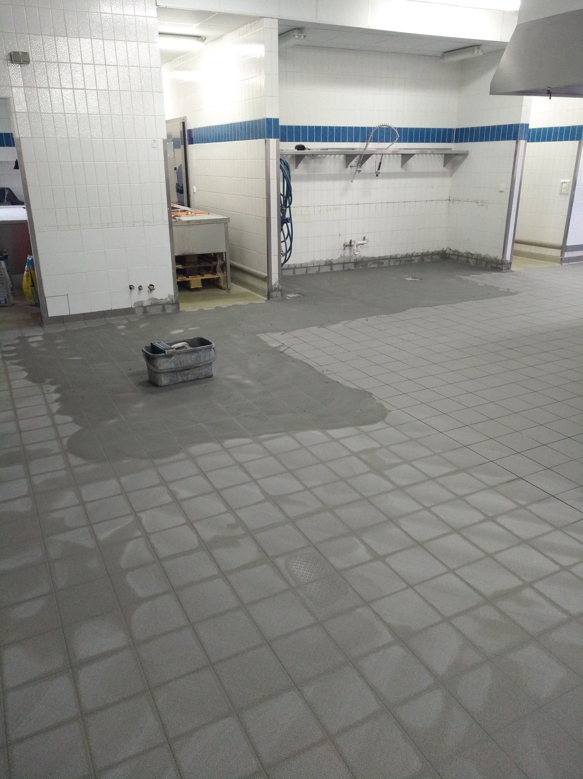 Fliesenarbeiten in Norderney. Es wurde in einem Apartmenthaus das gesamte Erdgeschoss modernisiert und von uns in diesem Zusammenhang die Fliesenarbeiten in den 2 Bädern und dem Flur / Eingangsbereich ausgeführt. Der Flur hatte durch verschiedene Höhen angrenzender Räumlichkeiten in vielen Bereichen unterschiedlich starkes Gefälle was im Zusammenhang mit den großen Bodenfliesen und den schräg verbauten Revisionsschächten die Arbeiten erschwerten.