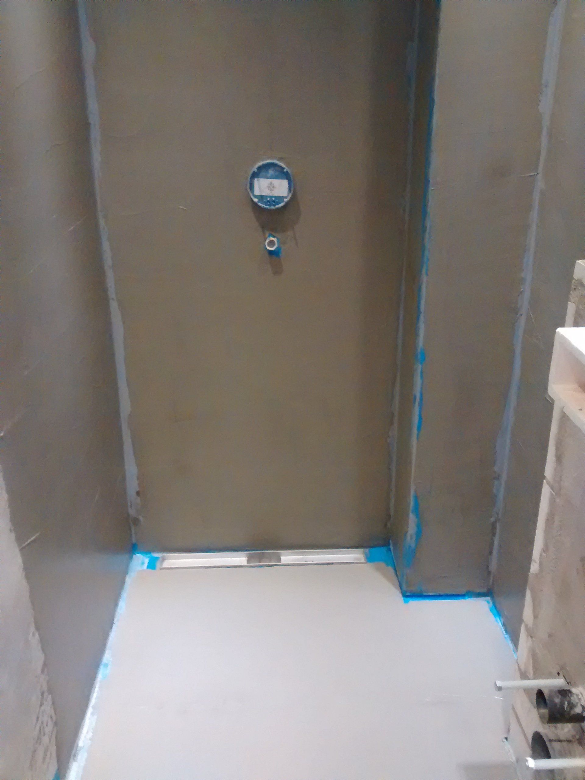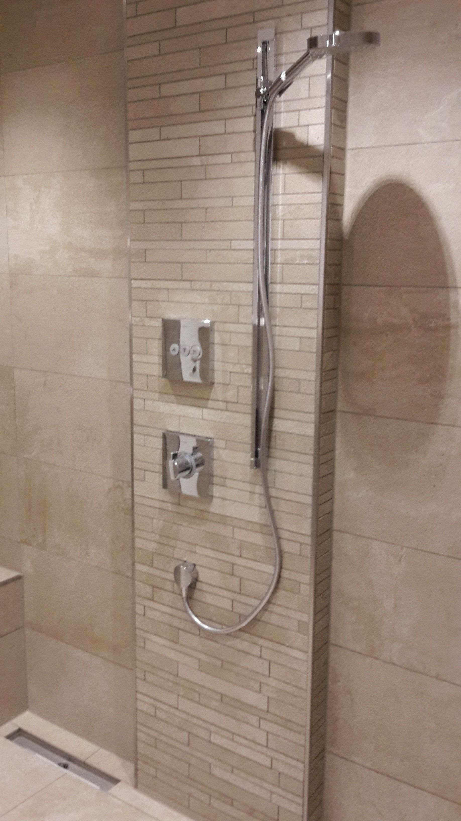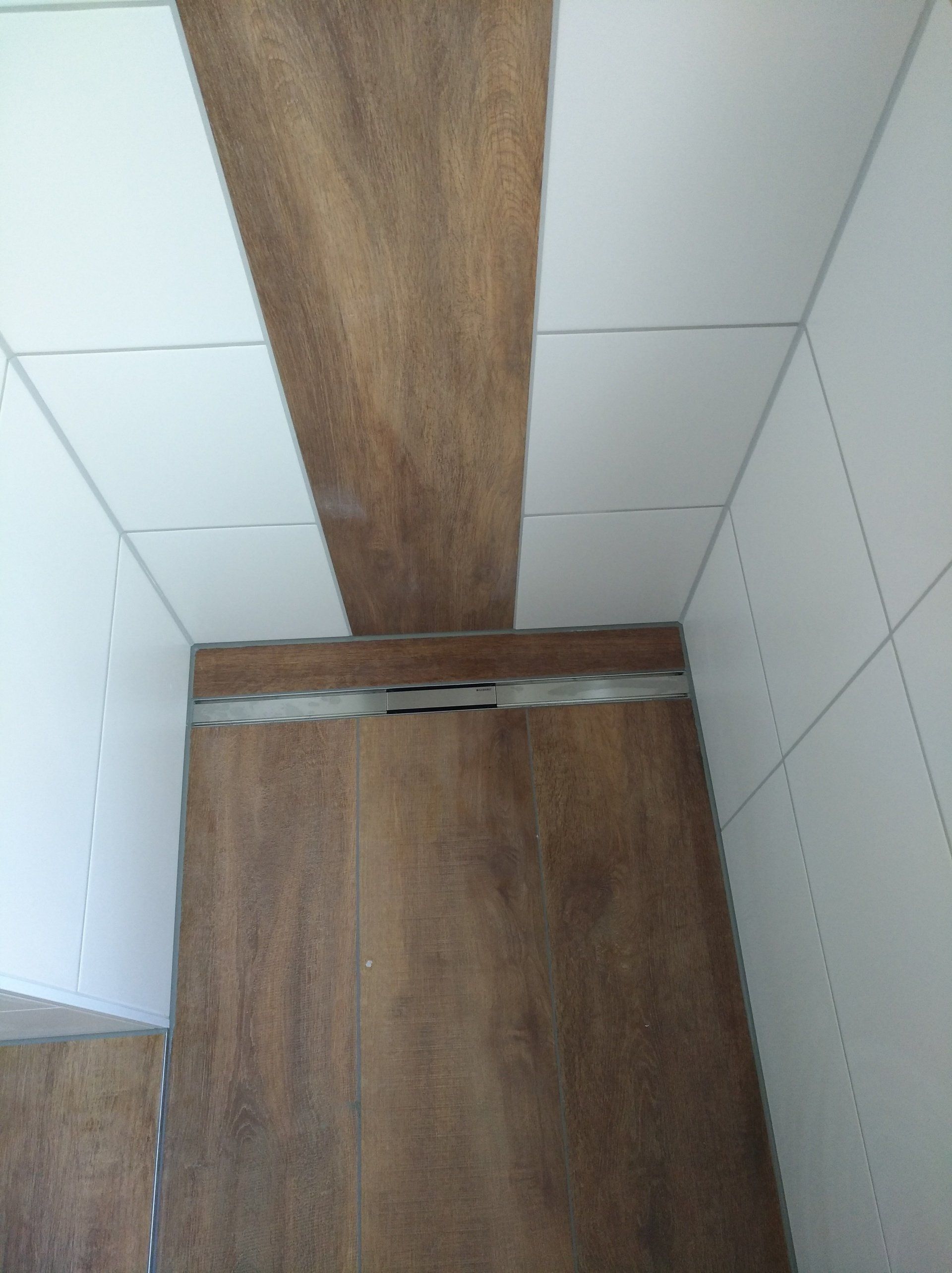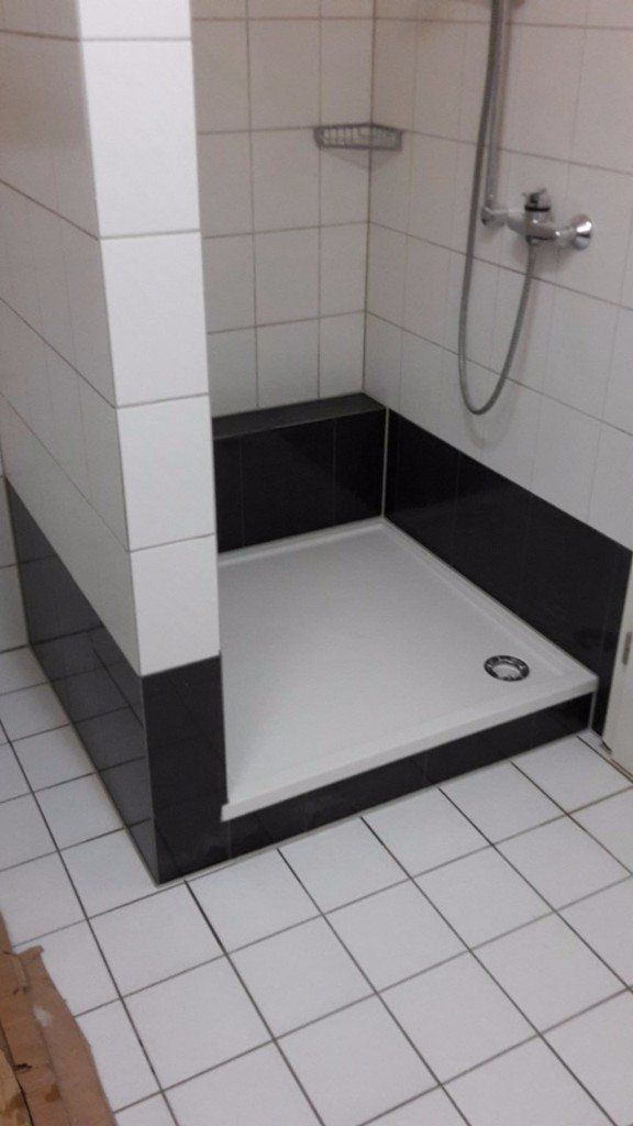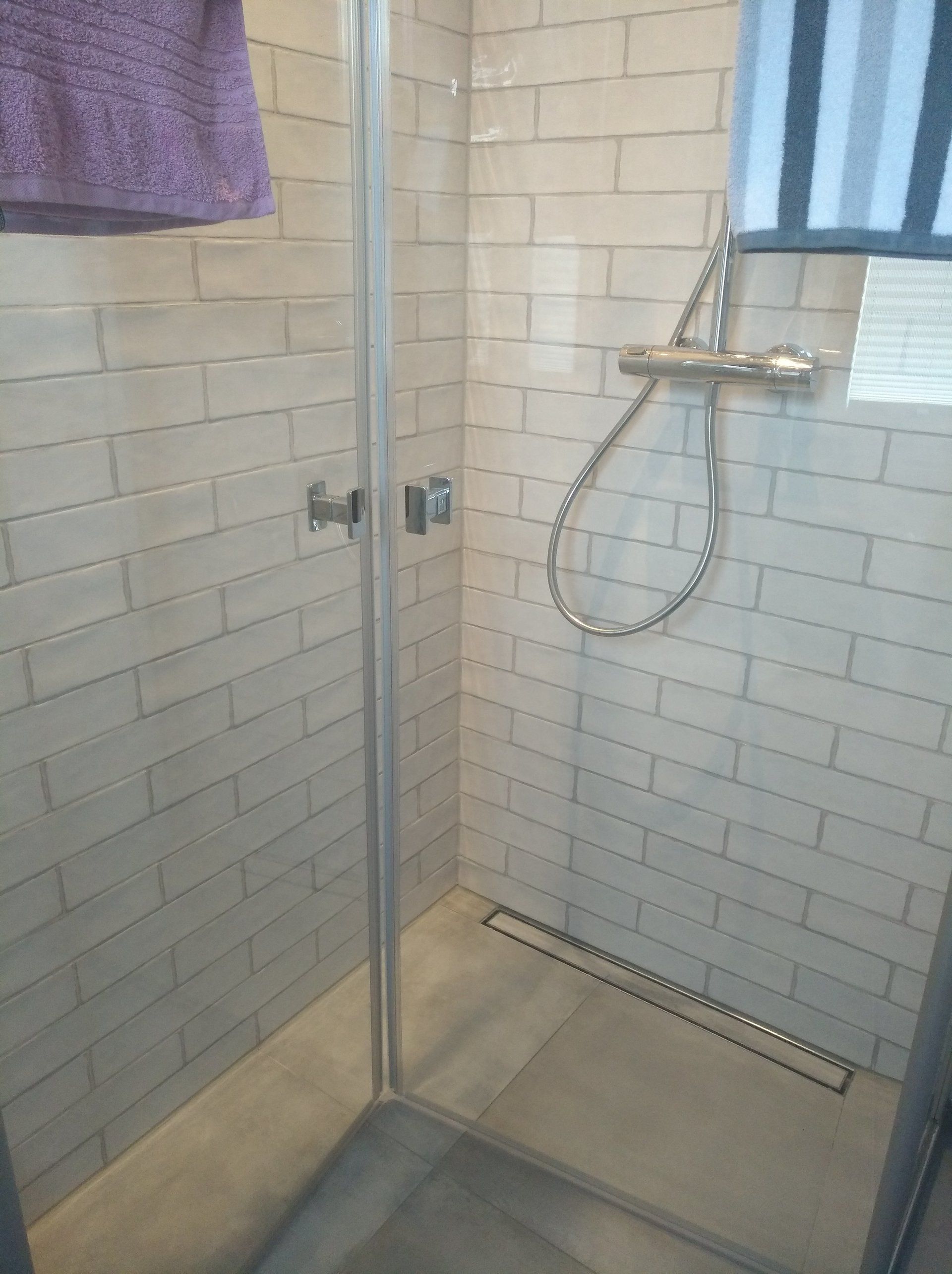 Bei diesem Bad reichte der Bodenaufbau nicht um die Duschrinne ebenerdig einzubauen.