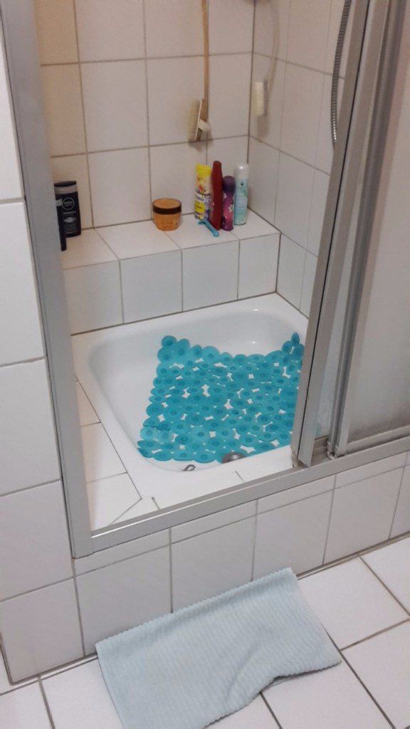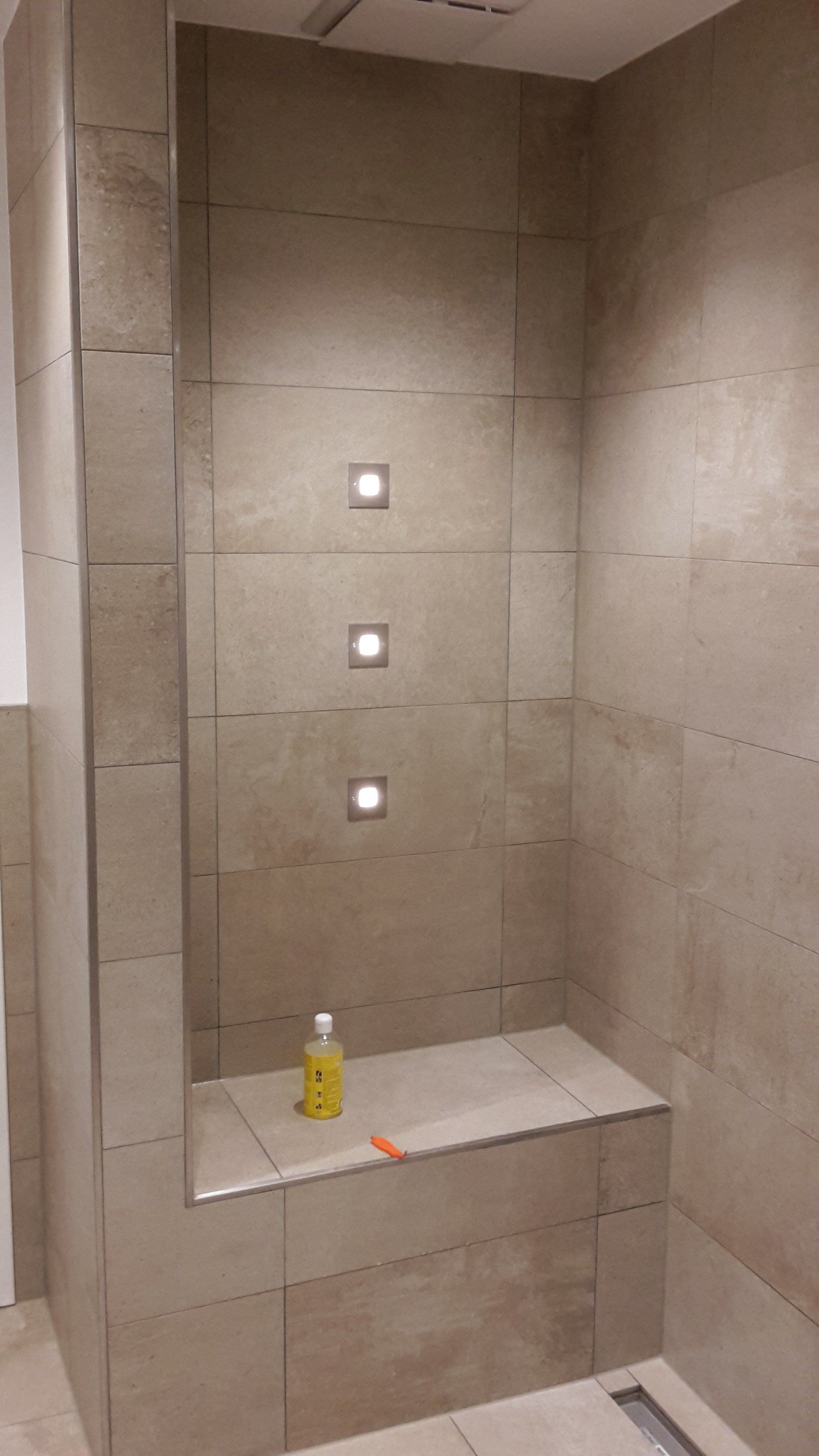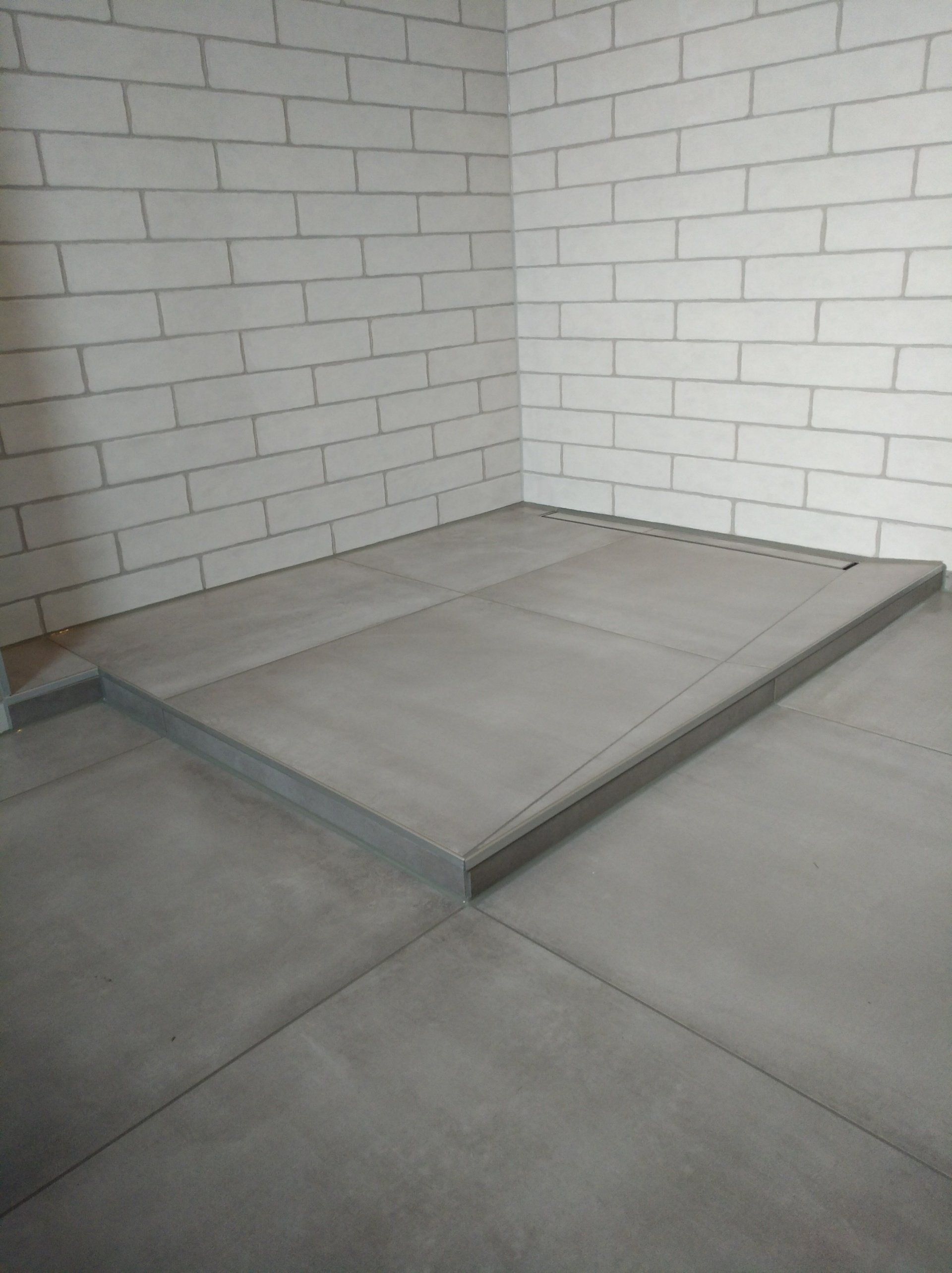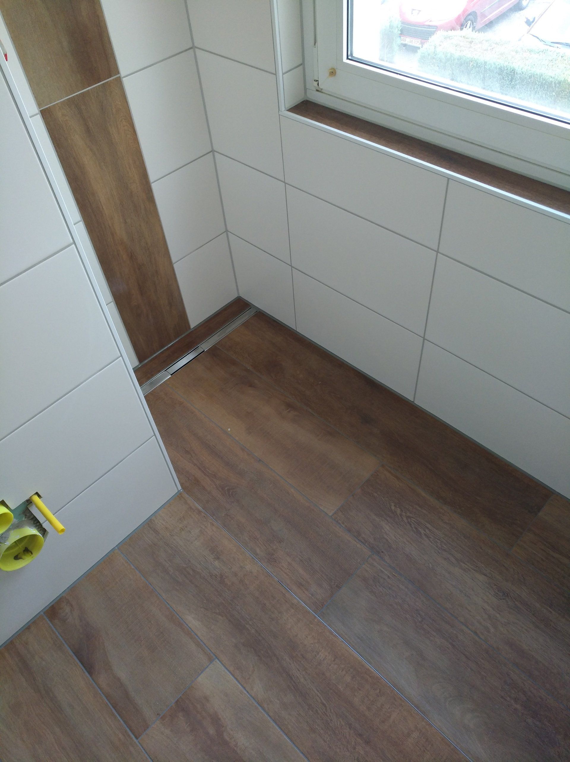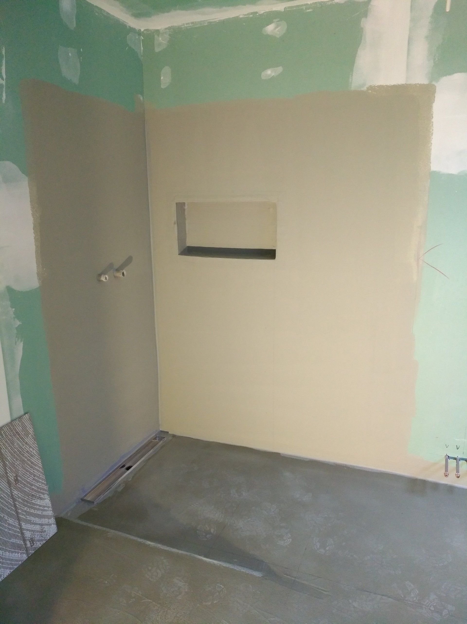 Bei diesem Bad reichte der Bodenaufbau nicht um die Duschrinne ebenerdig einzubauen.