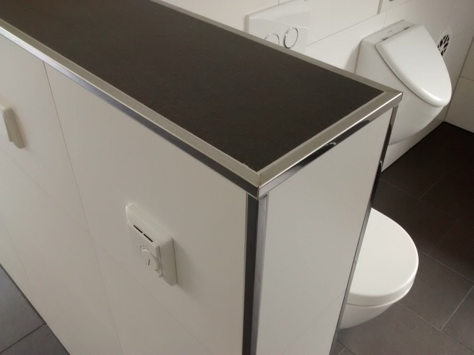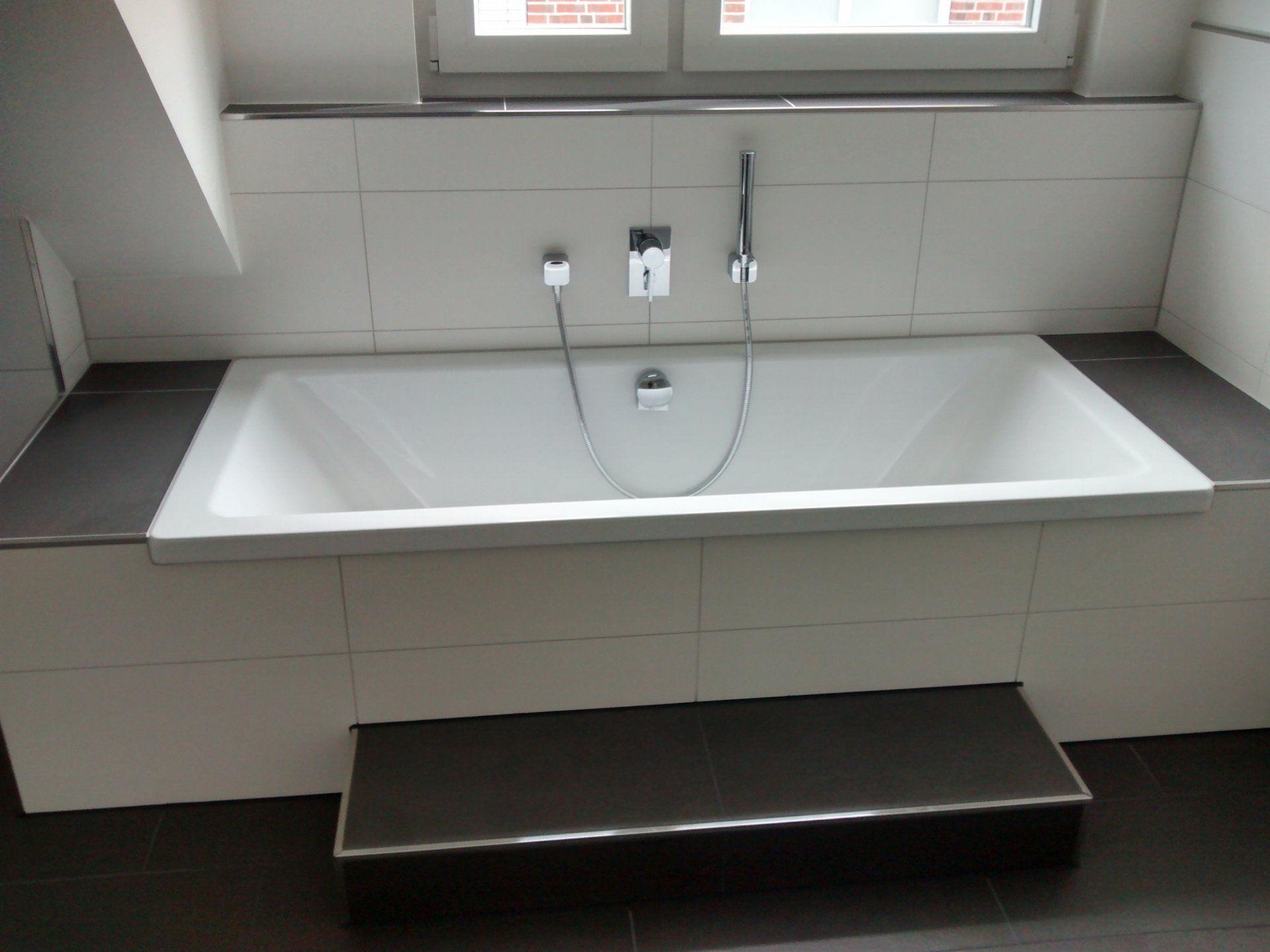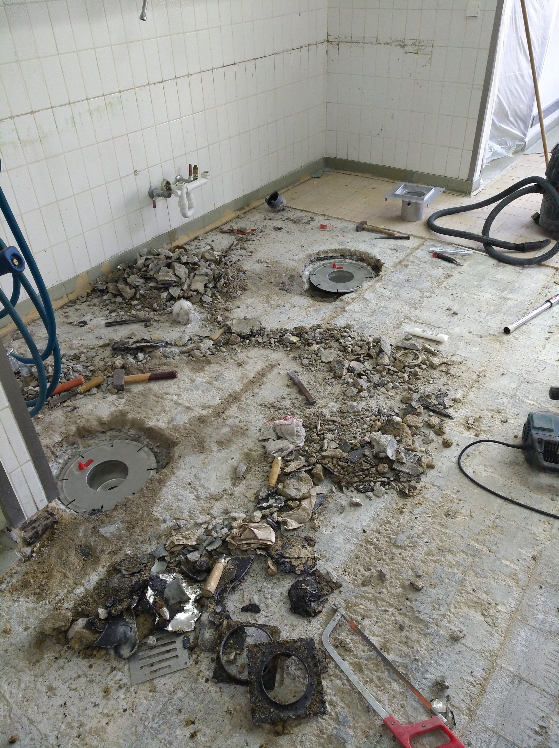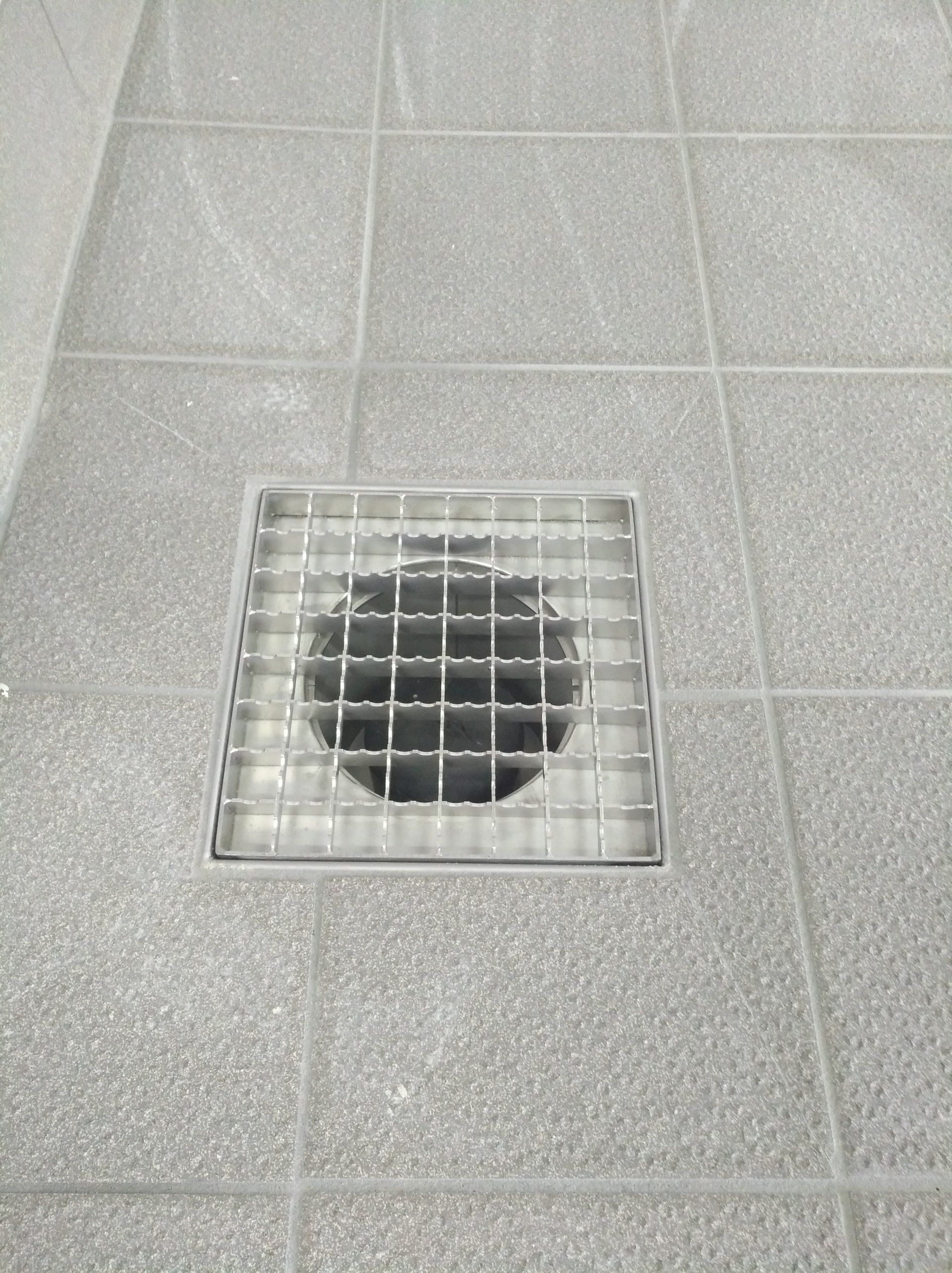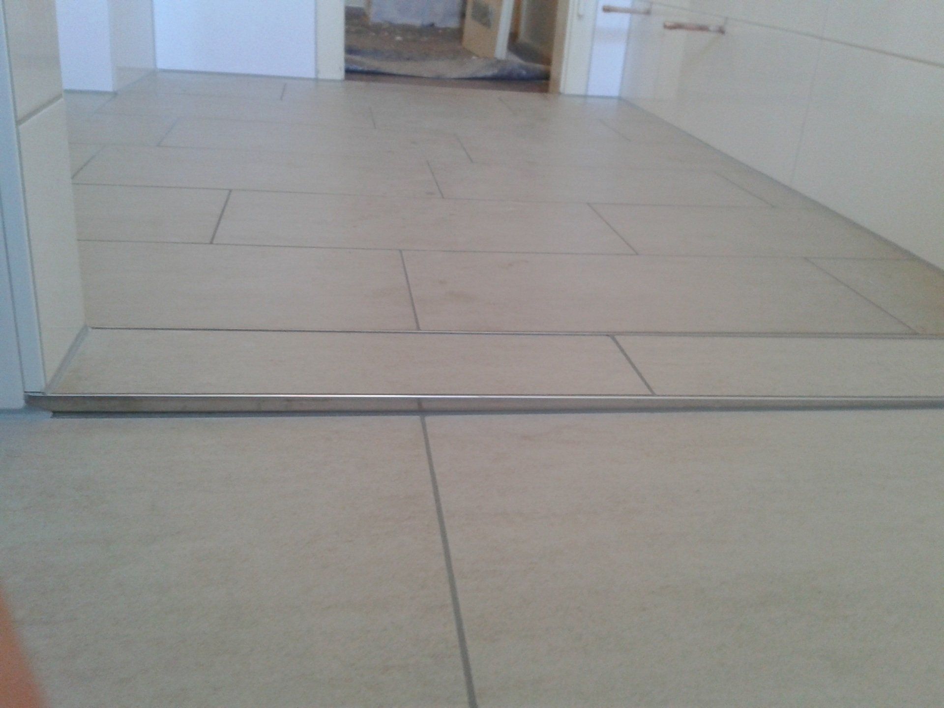 Bei diesem Bad reichte der Bodenaufbau nicht um die Duschrinne ebenerdig einzubauen.