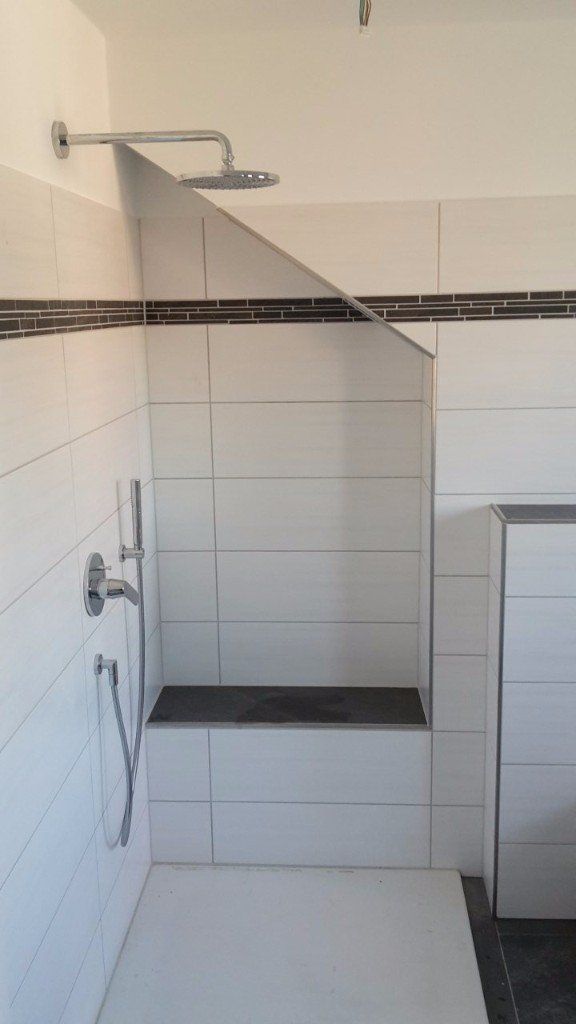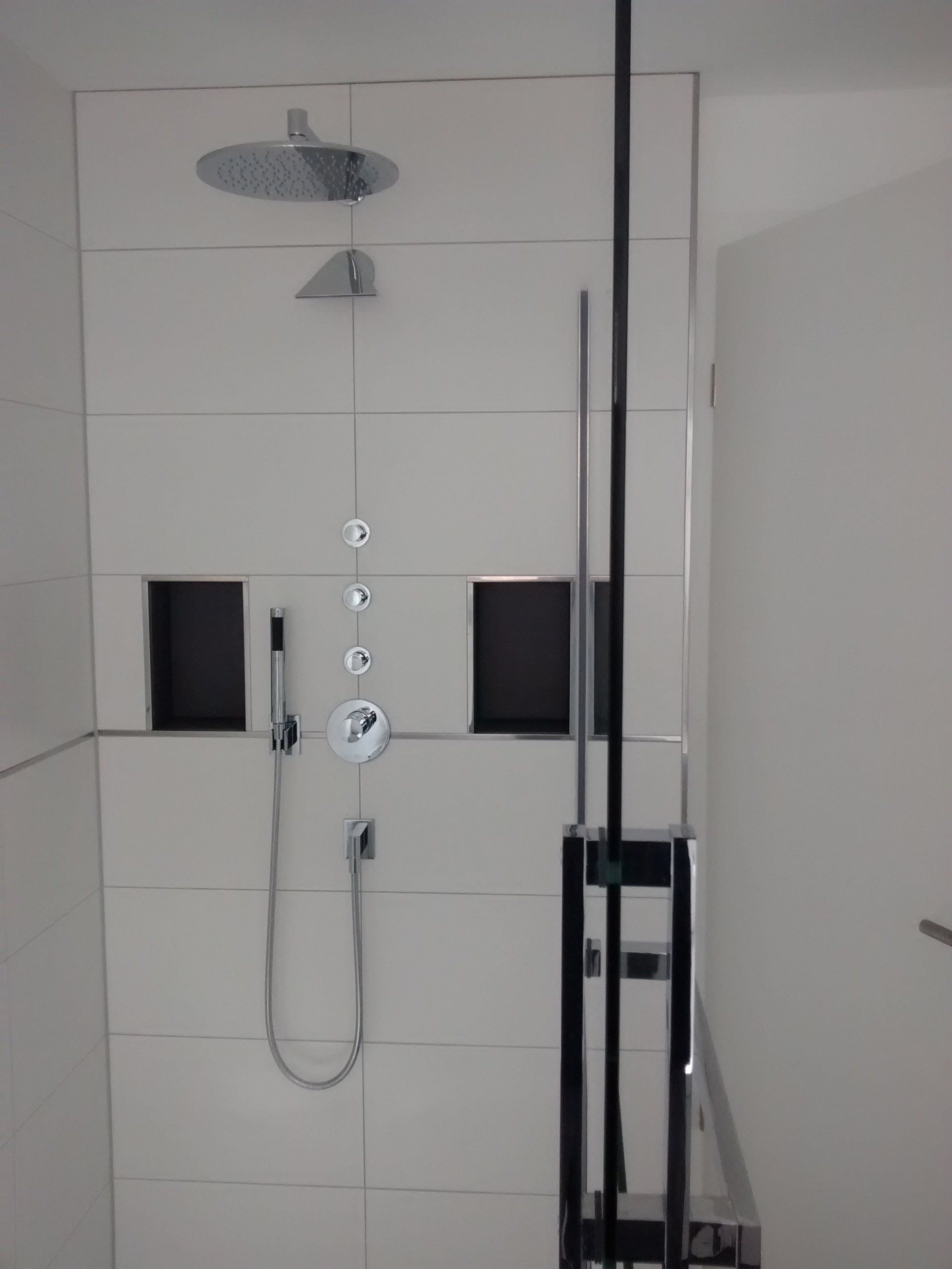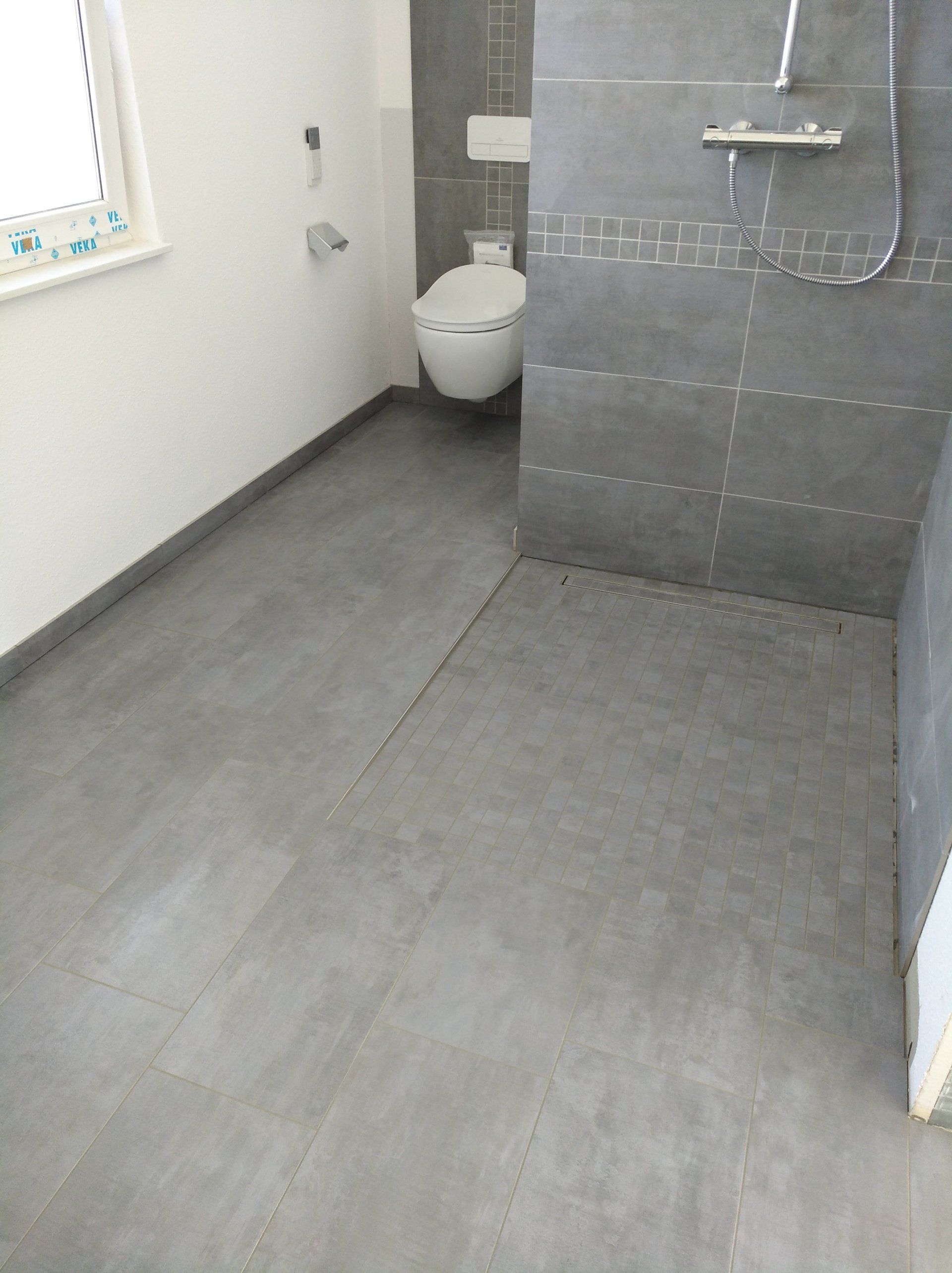 Da eine Duschwanne nicht in Frage kam, um den Raum mit einer Wanne in der Grüße nicht optisch zu verkleinern,