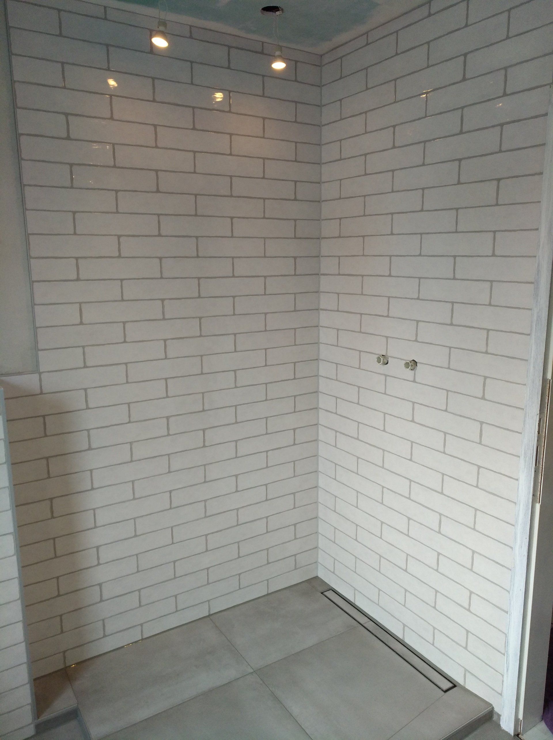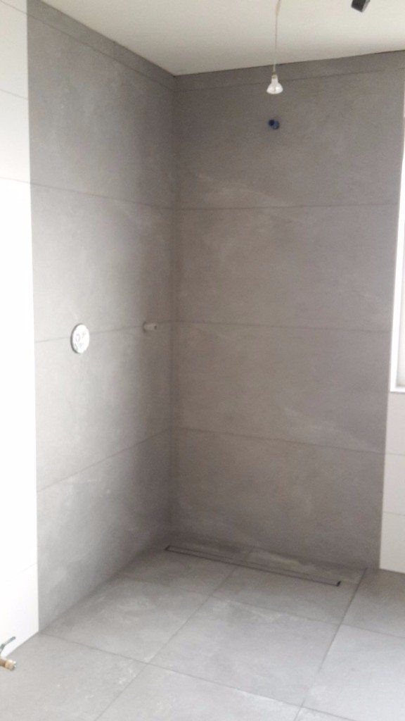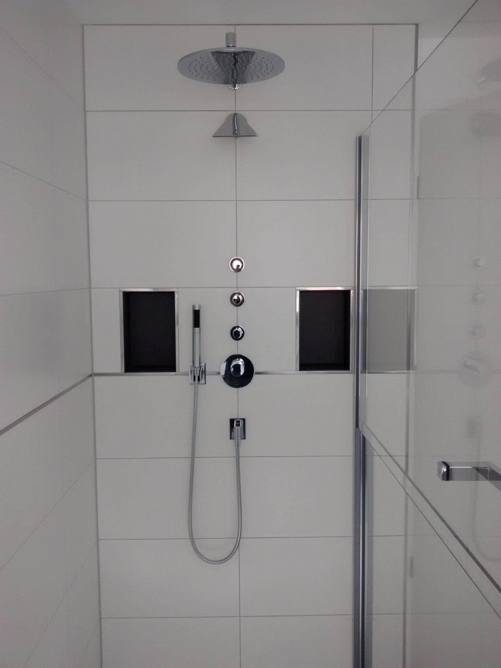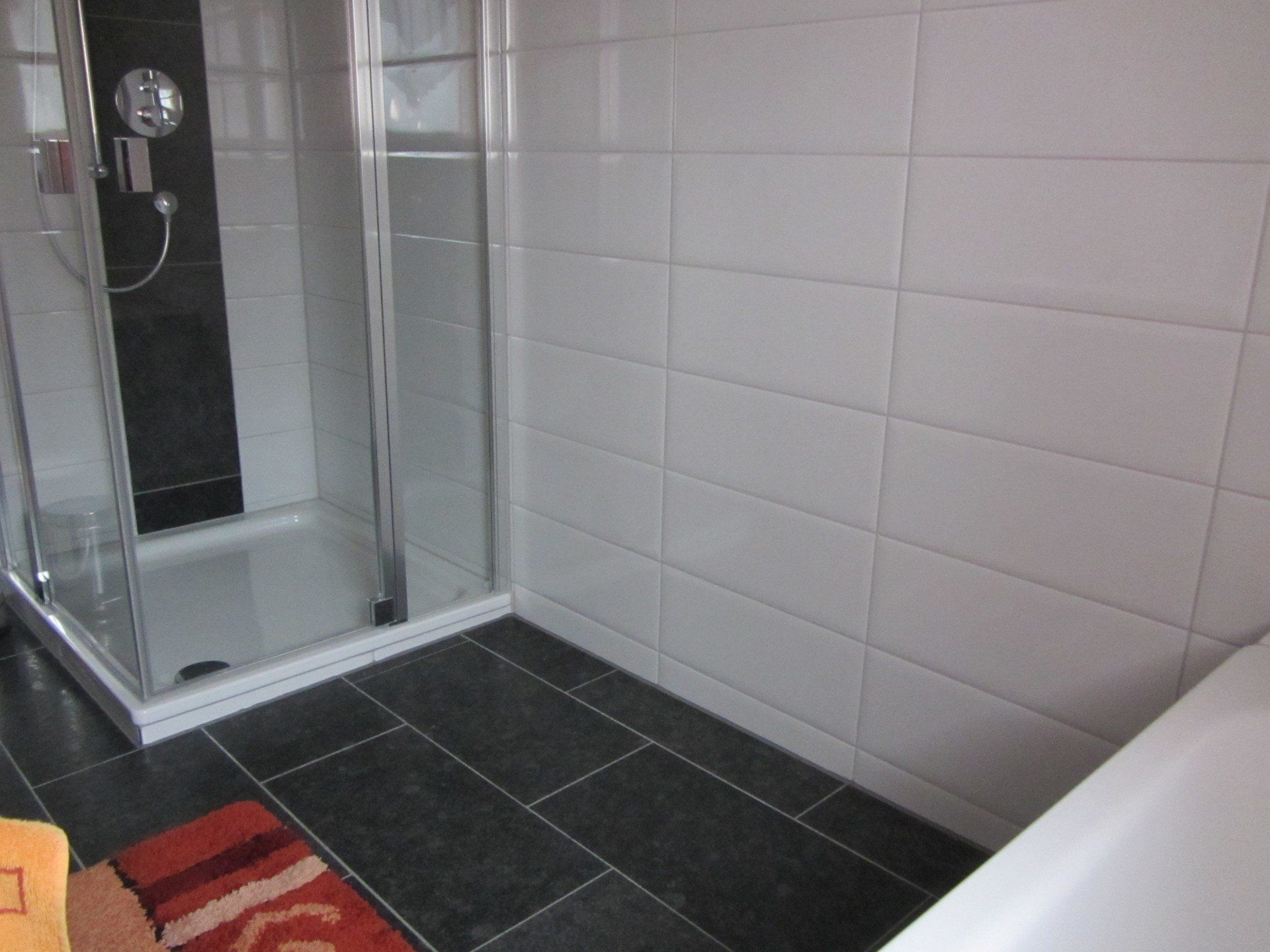 Da eine Duschwanne nicht in Frage kam, um den Raum mit einer Wanne in der Grüße nicht optisch zu verkleinern,