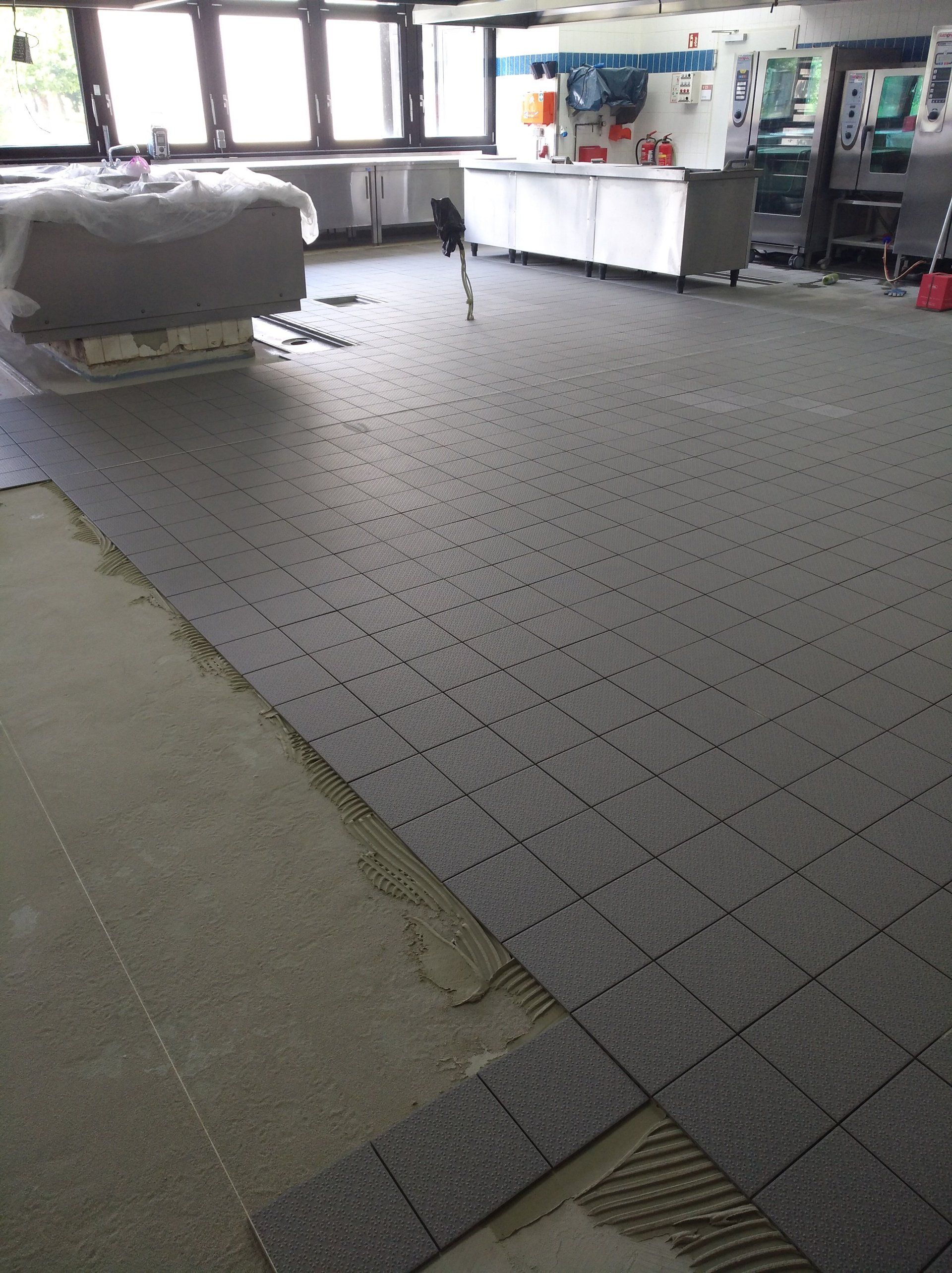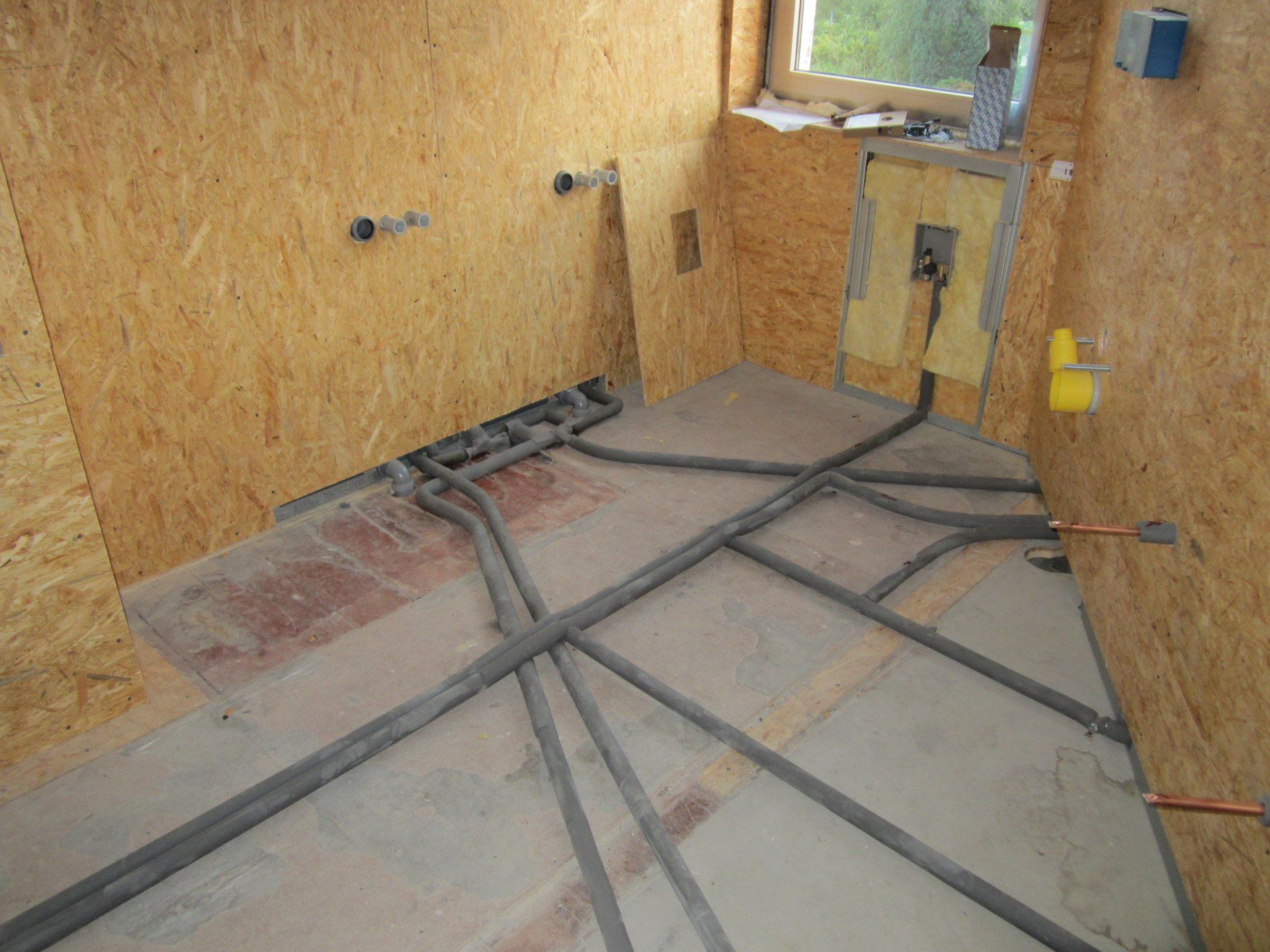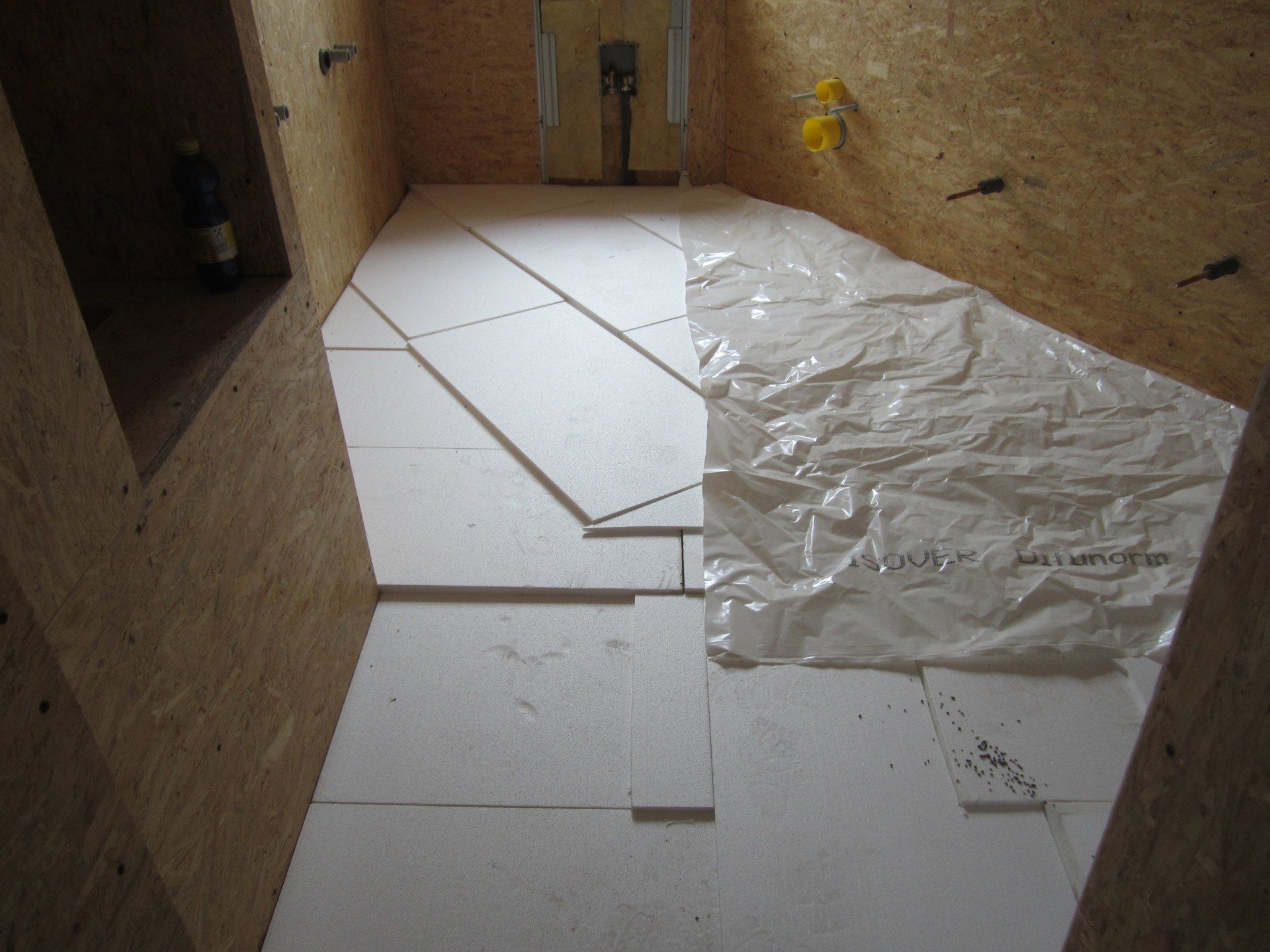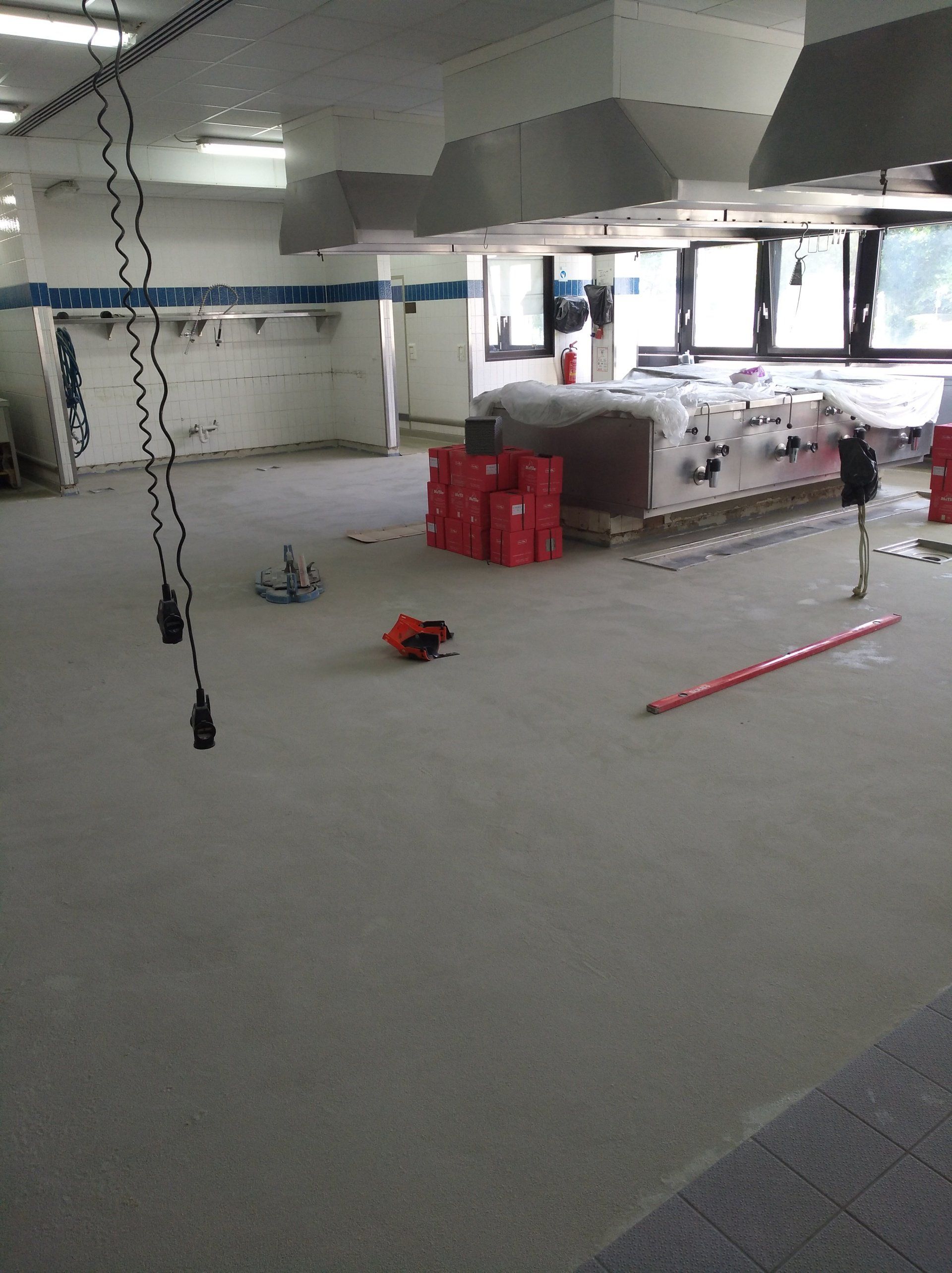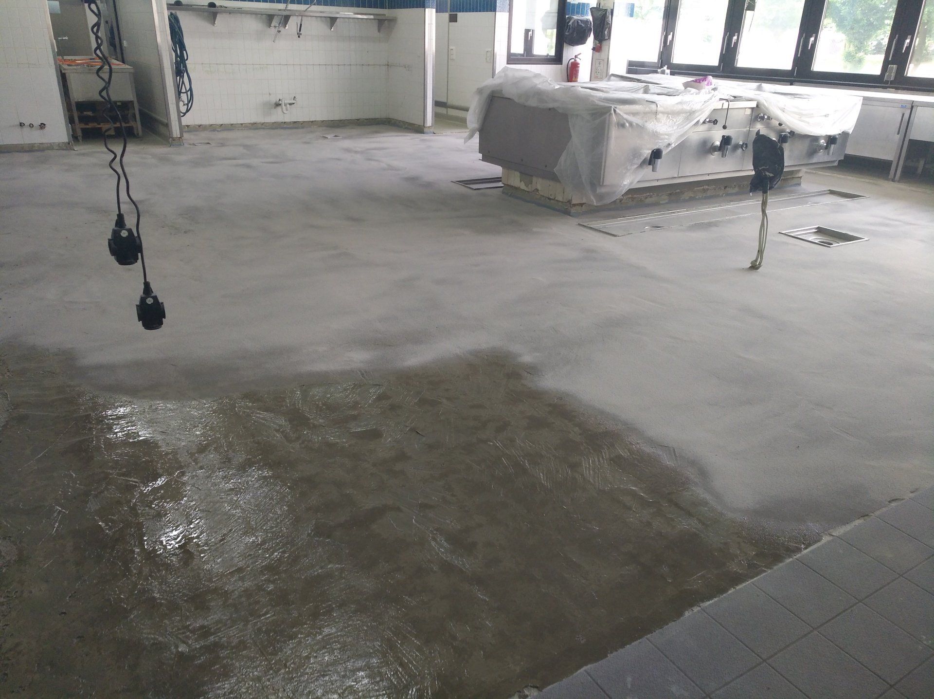 wurde die Rinne so tief wie möglich montiert und das benötigte Gefälle mittels eines Estrichs eingebracht.