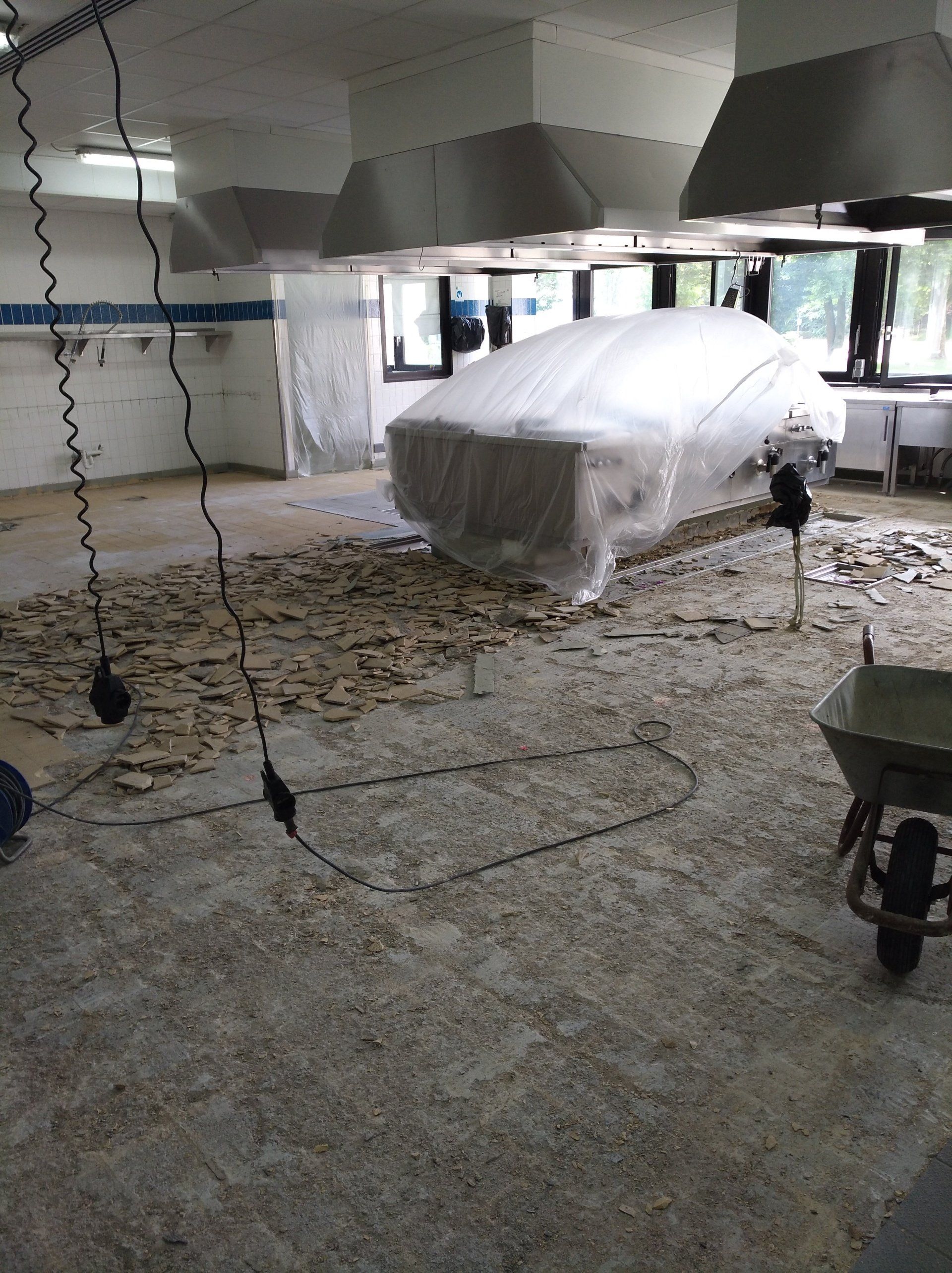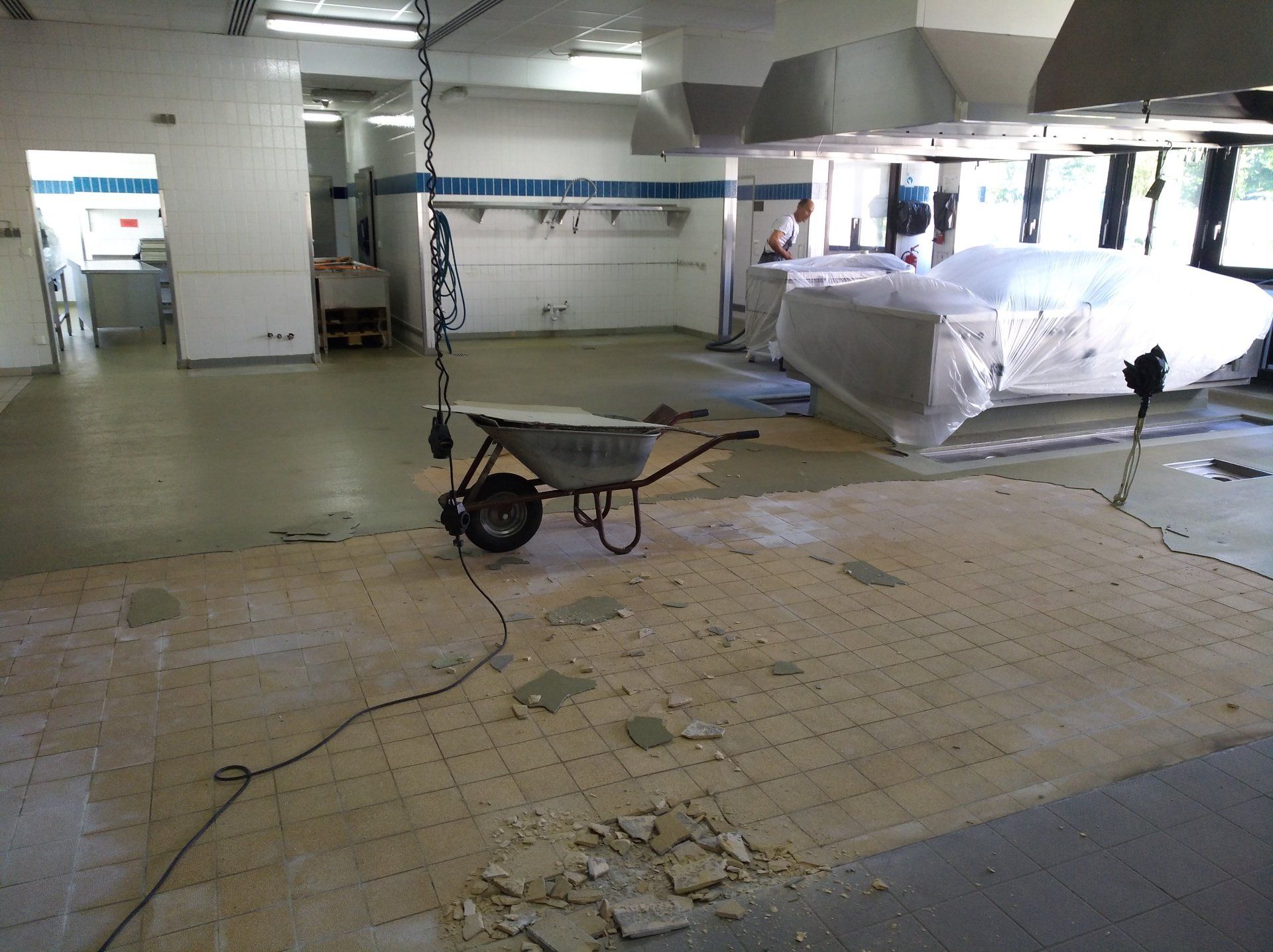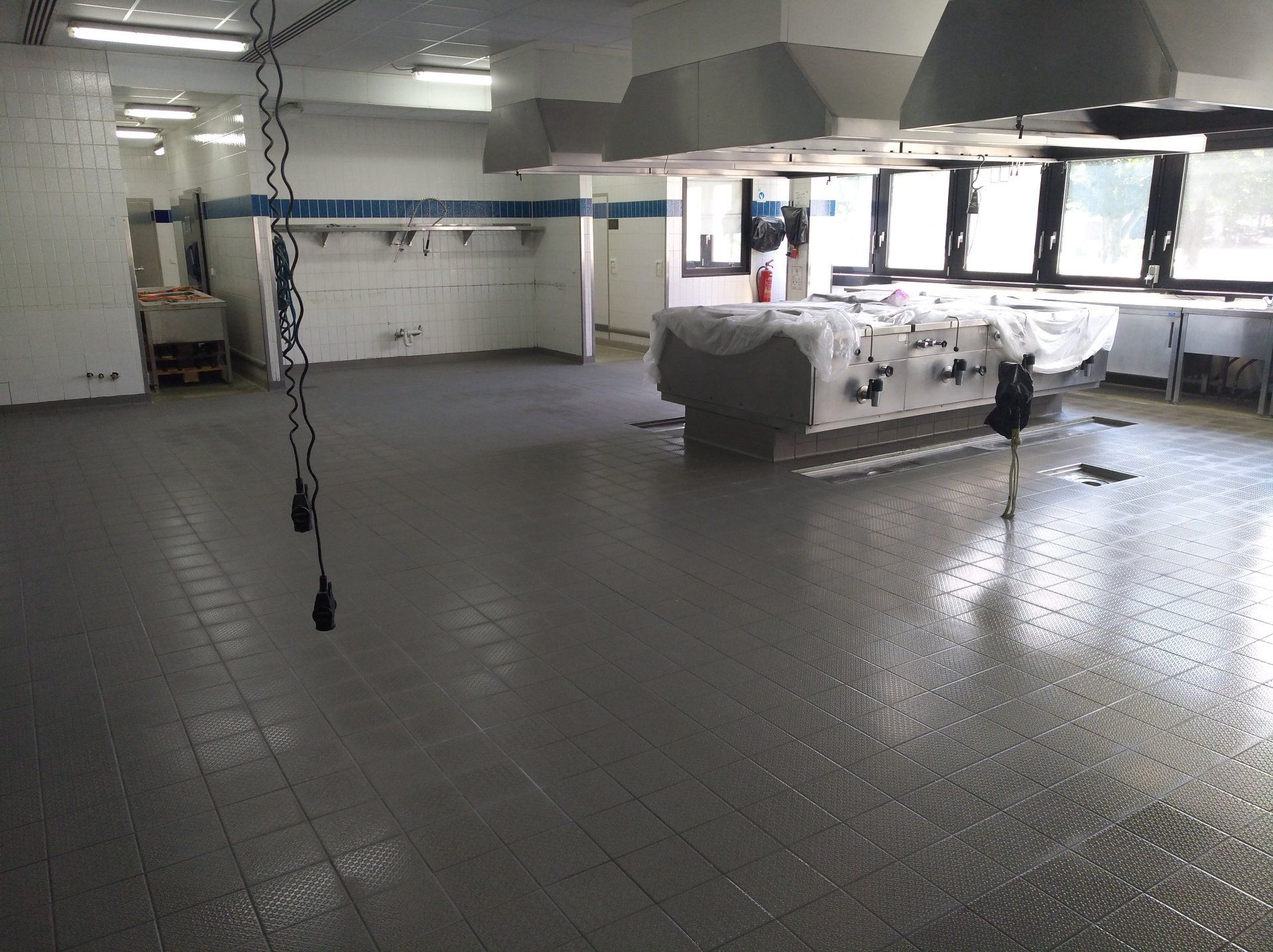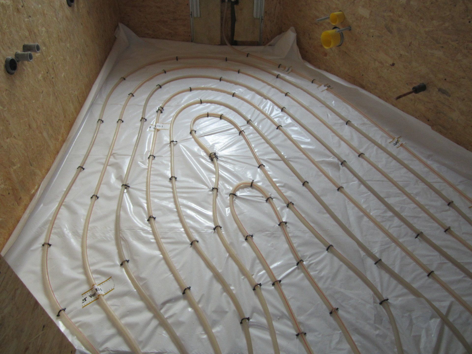 wurde die Rinne so tief wie möglich montiert und das benötigte Gefälle mittels eines Estrichs eingebracht.